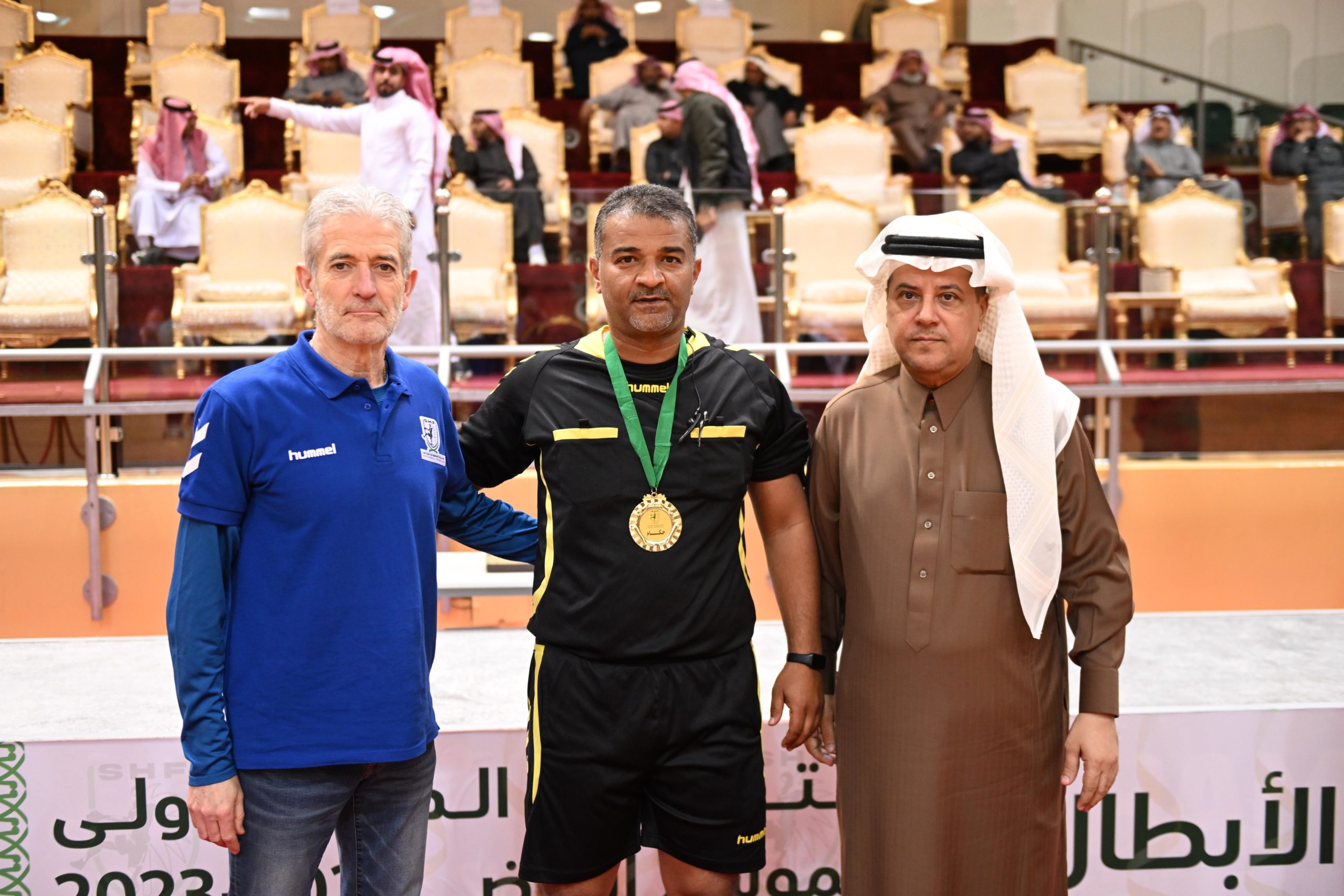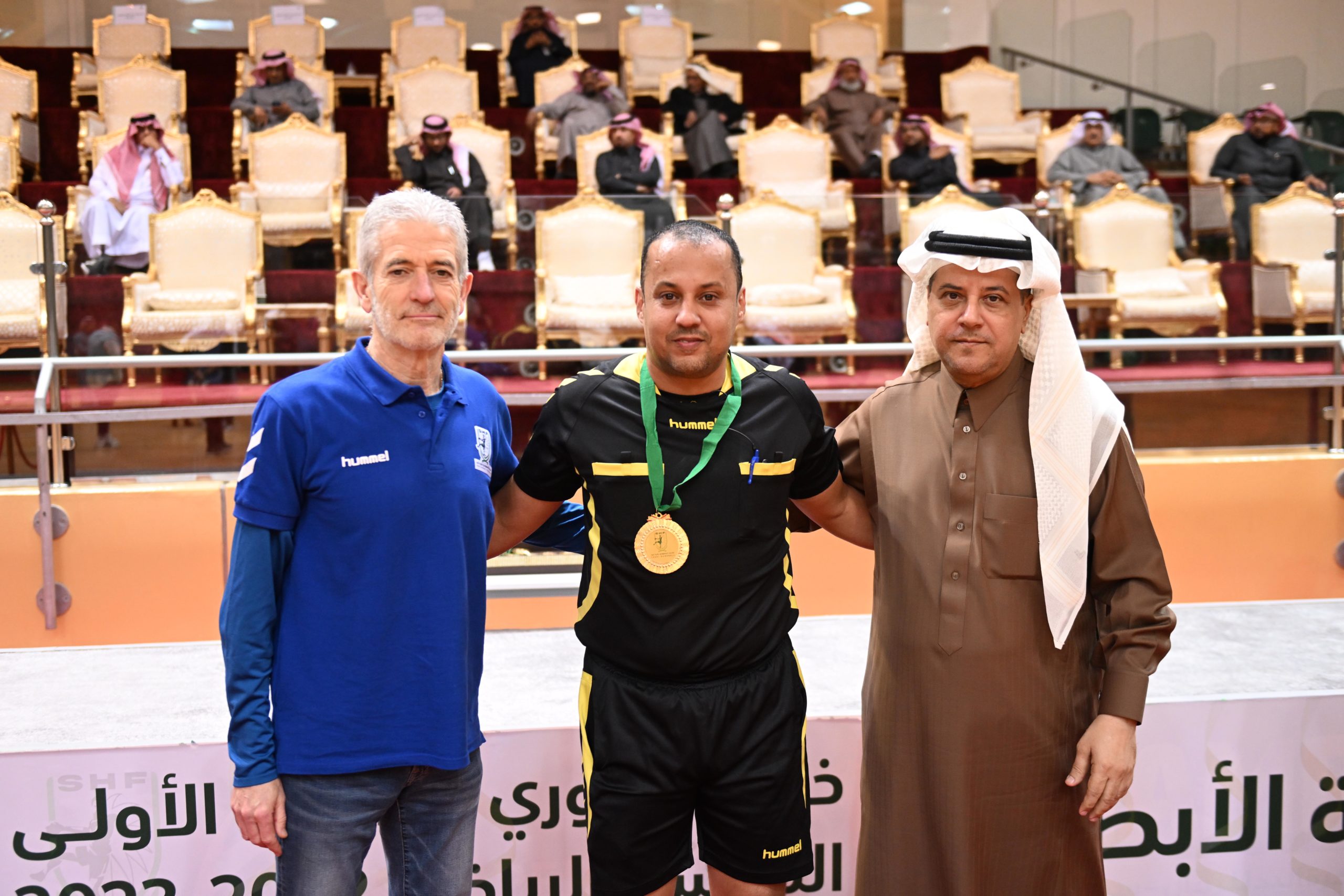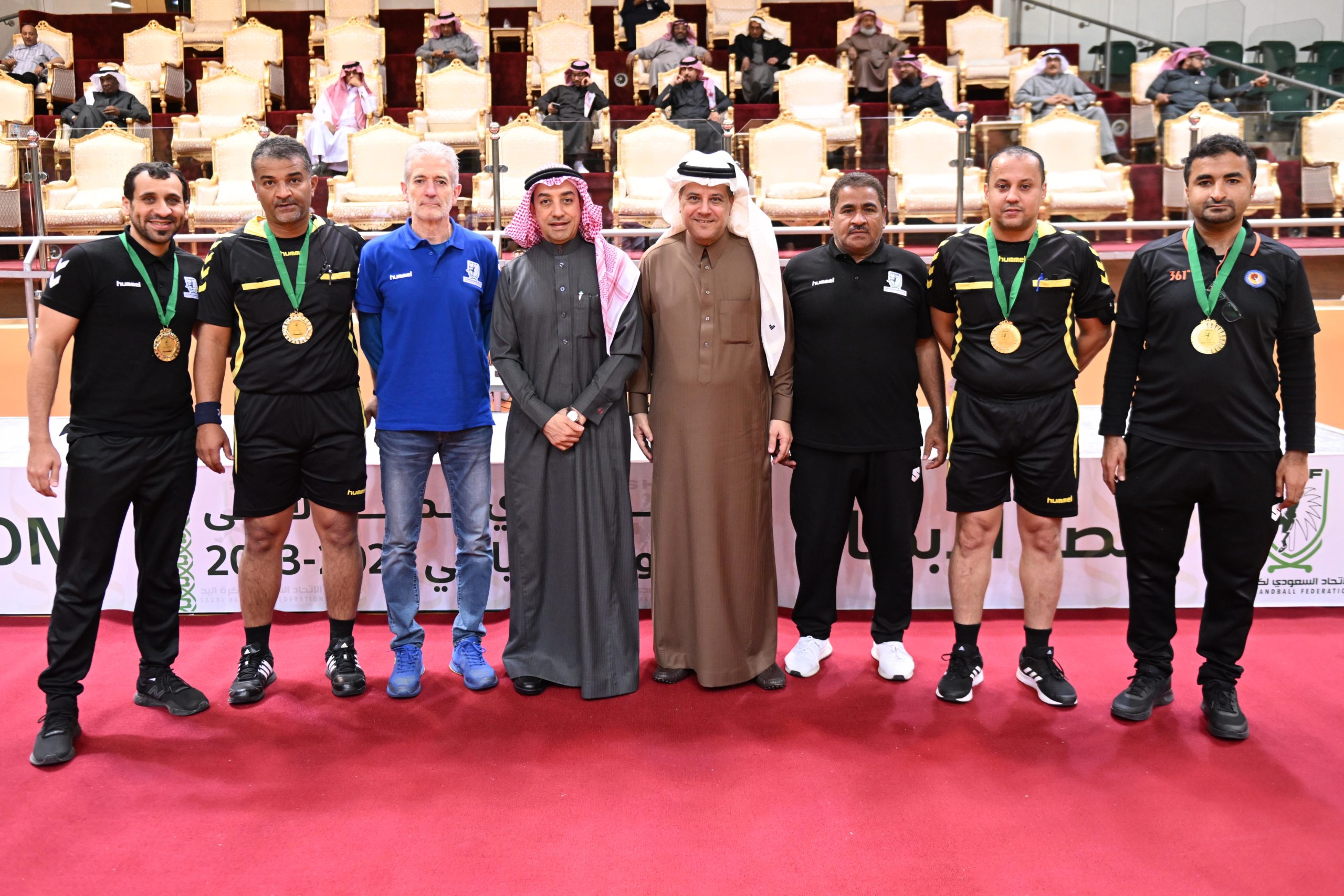 وكرّم نائب رئيس ⁦‬⁩الاتحاد السعودي لكرة اليد الأستـاذ زهيـر القرشي حكام المباراة الختامية لدوري الدرجة الأولى،‬⁩ بحضور السيد رامون رئيس دائرة التحكيم، وتوج أعضاء مجلس إدارة الاتحاد الاستاذ علي العليوات والمهندس أحمد خريدة، فريق العدالة بالميداليات الفضية،