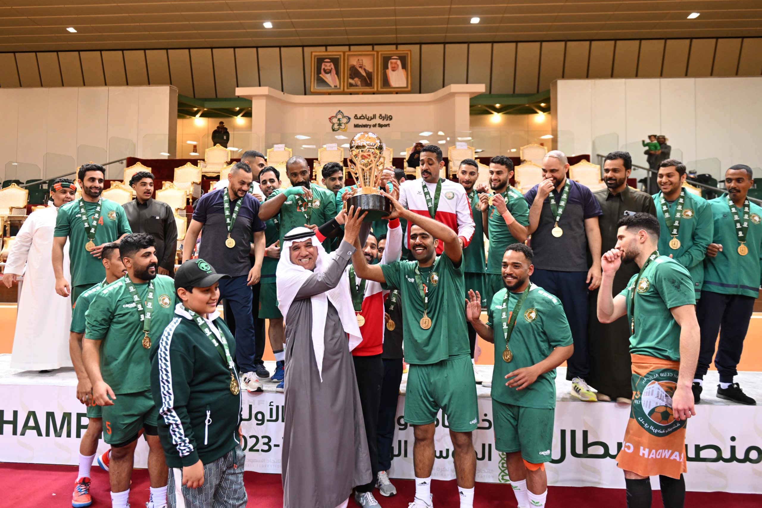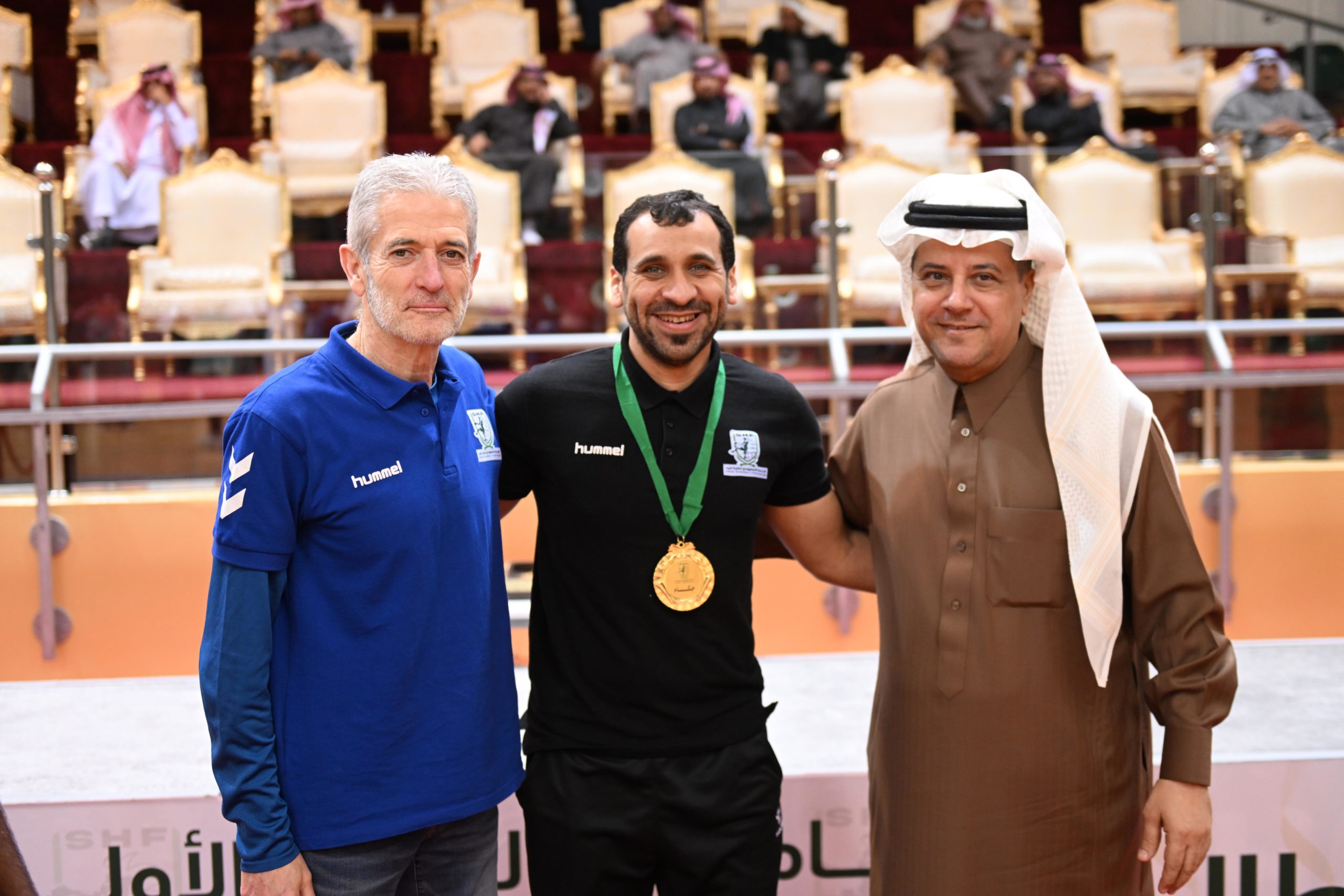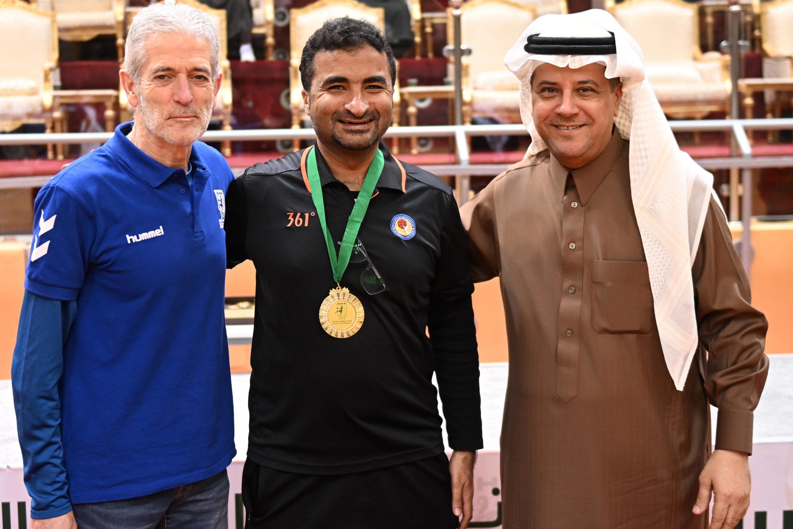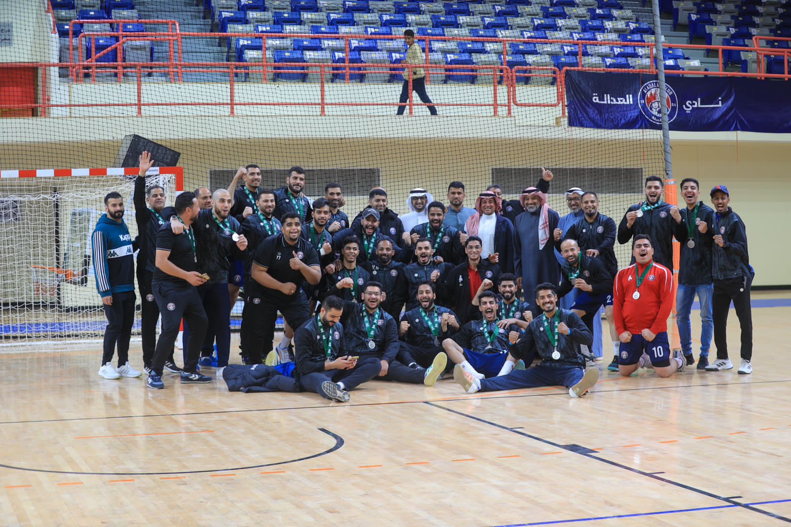 وكرّم نائب رئيس ⁦‬⁩الاتحاد السعودي لكرة اليد الأستـاذ زهيـر القرشي حكام المباراة الختامية لدوري الدرجة الأولى،‬⁩ بحضور السيد رامون رئيس دائرة التحكيم، وتوج أعضاء مجلس إدارة الاتحاد الاستاذ علي العليوات والمهندس أحمد خريدة، فريق العدالة بالميداليات الفضية،