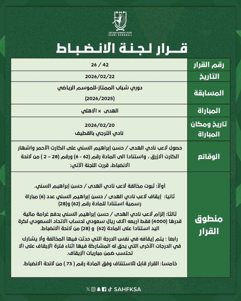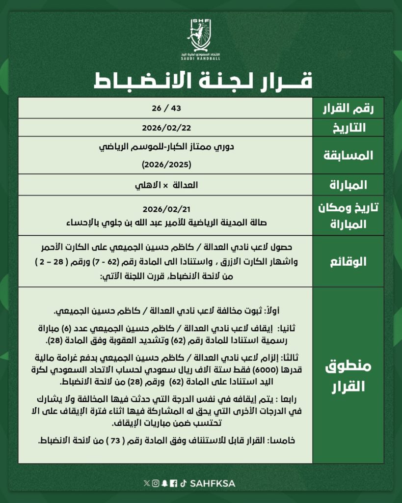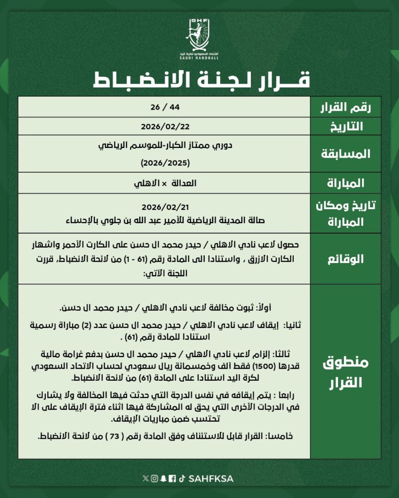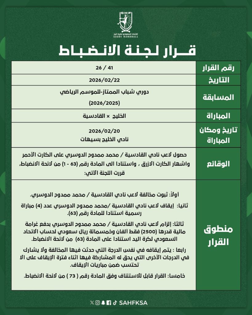 قرارات لجنة الأنضباط (40 | 41 | 42 | 43 | 44)